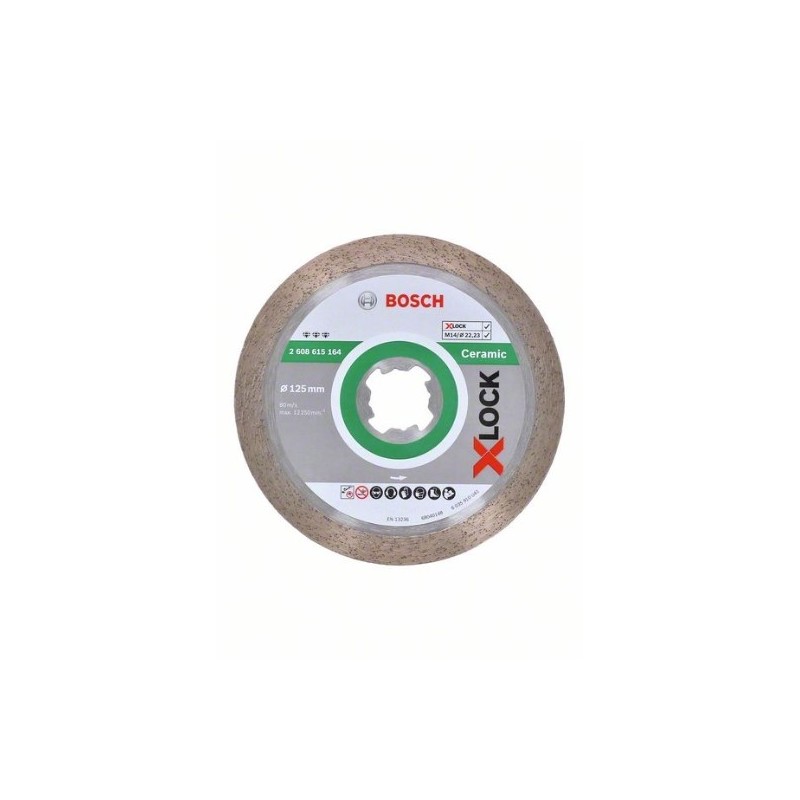 El disco de corte de diamante Standard for Ceramic con X-LOCK proporciona cortes seguros en baldosa.