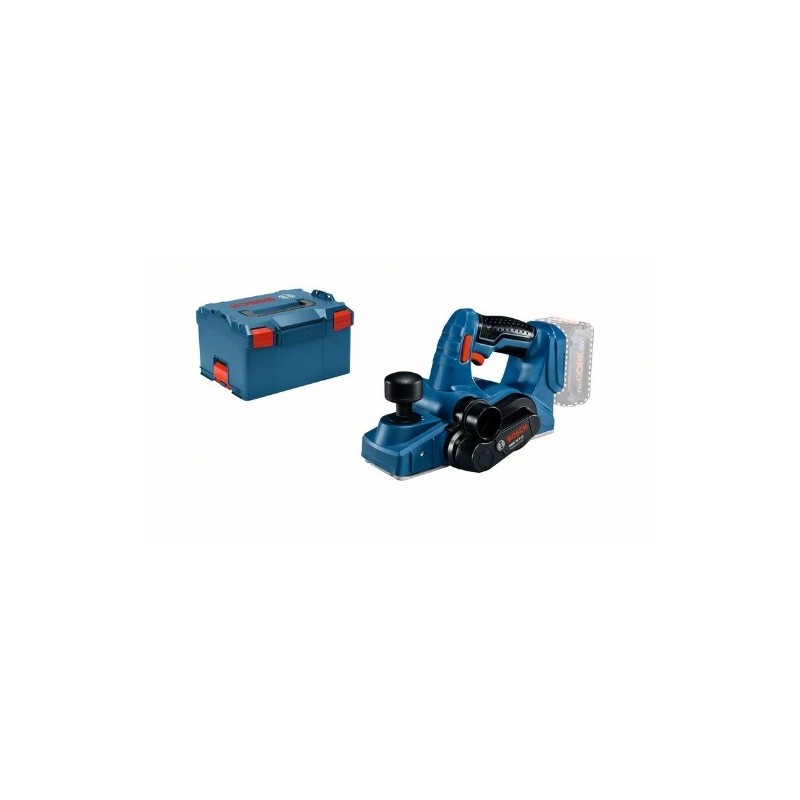 Cepillo a batería GHO 18 V-LI; Rendimiento sin cable impresionante en la gama de 18 V; Ajuste continuo de la profundidad de corte hasta 1,6 mm para un avance de trabajo rápido y sin interrupciones; Con cuchillas reversibles ultraafiladas de metal duro resistente para obtener superficies precisas de alta calidad; Peso bajo para un manejo cómodo y sencillo; Las innovadoras baterías COOLPACK garantizan una óptima disipación térmica y prolongan de este modo la vida útil hasta un 100 % (véanse las baterías de litio sin COOLPACK); Sistema ECP de Bosch (Electronic Cell Protection): protege la batería contra sobrecarga, calentamiento y descarga total; Freno de motor para depositar la herramienta de manera segura; Cambio de cuchillas rápido para un trabajo sin interrupciones; Expulsión de virutas por la izquierda o la derecha; Bandeja para L-BOXX, herramienta y cargador; Maletín L-BOXX 238 (1 600 A00 1RS)