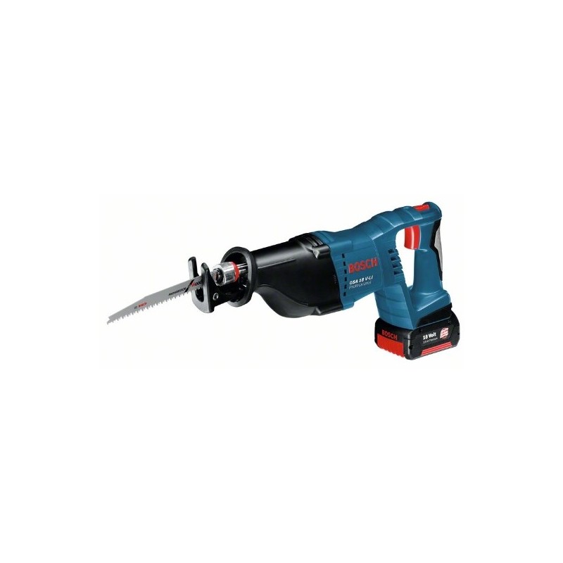 Sierra sable de batería GSA 18 V-LI; Máximo rendimiento de corte entre las de su clase; Permite cortar más de 100 vigas de pino (100 x 100 mm) con una sola carga de batería; Electronic Motor Protection (EMP) impide sobrecargas del motor y permite así alargar su vida útil; Sistema SDS de Bosch para un cambio rápido y fácil de la hoja de sierra; Extraordinaria tecnología de litio Premium de Bosch para una vida útil más larga y un rendimiento insuperable de la batería; Sistema ECP de Bosch (Electronic Cell Protection): protege la batería contra sobrecarga, calentamiento y descarga total; Ajuste de la velocidad en 2 niveles para diferentes materiales; Empuñadura ergonómica con zona de confort en el área Softgrip, para una sujeción segura y un trabajo sin esfuerzo; Sistema Hyper Charge de Bosch: gracias a la carga rápida, las baterías alcanzan el 75% de carga en solo la mitad del tiempo de carga; No tiene efecto memoria: la batería puede recargarse siempre, independientemente de su estado de carga y sin dañar los elementos; Maletín L-BOXX 238 (1 600 A00 1RS); 2 baterías GBA 18V 4.0Ah (1 600 Z00 038); Cargador rápido GAL 18V-40 Professional (1 600 A01 9RJ); 1 hoja de sierra sable S 123 XF, Progressor for Metal (disponible como juego aparte de 2: 2 608 654 416); 1 hoja de sierra sable S 2345 X, Progressor for Wood (disponible como juego aparte de 2: 2 608 654 403); 1/1 bandeja para L-BOXX para herramienta y cargador (1 600 A00 2UZ, 1 600 A00 2VF)