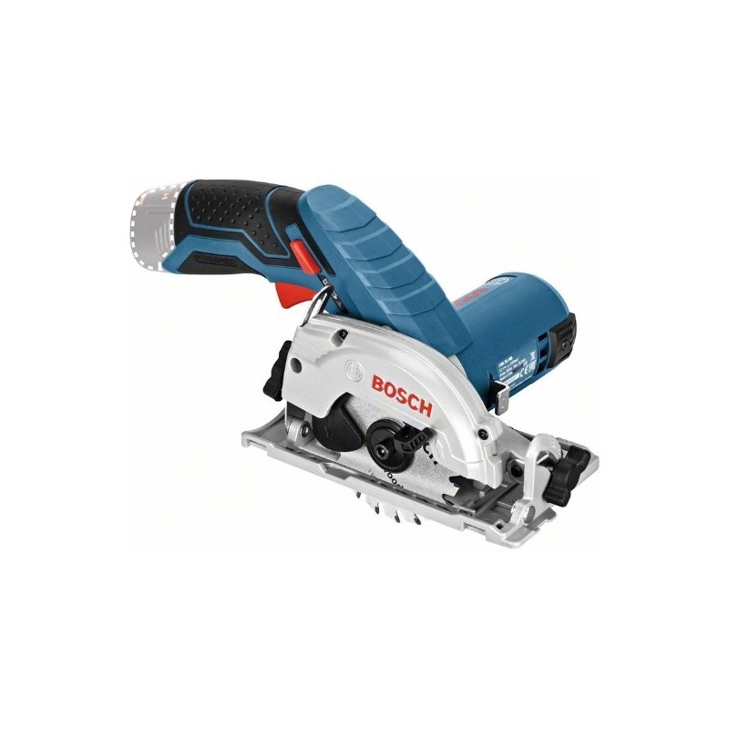 Sierra circular a batería GKS 12V-26; La sierra universal profesional más pequeña; El diseño más compacto de su clase para un manejo perfecto y una gran variedad de aplicaciones en madera; Excelente ergonomía: perímetro de la empuñadura reducido y peso ligero (solo 1,4 kg) para un óptimo confort de trabajo; Práctico indicador del estado de carga: para la visualización constante de la reserva de energía disponible; Excelente visibilidad de la línea de corte gracias a la claridad del LED; Robusta placa base de aluminio para cortes precisos; Tope paralelo y adaptador de carriles guía optimizados para el sistema de carriles guía de Bosch en el suministro de serie; Adaptador de aspiración de polvo compatible con el sistema de aspiración de Bosch; Adaptador de aspiración; Llave allen; Caja de cartón; 1/2 bandeja para L-BOXX para herramienta (1 600 A00 2WU); Tope paralelo/adaptador de carril guía (1 619 P10 829); 1 sierra circular, Standard for Wood, 85 x 15 x 1,1 mm, 20 (2 608 643 071)