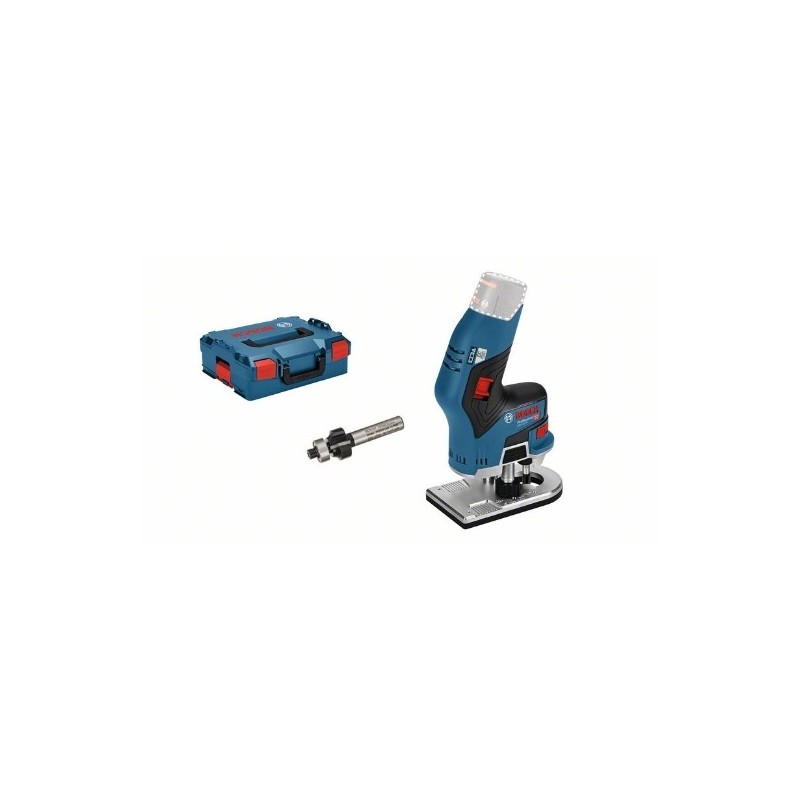 Fresadora de cantos a batería GKF 12V-8; La primera fresadora de cantos de 12 V del mundo con diseño único para un control perfecto; Forma innovadora, peso bajo y punto de equilibrio perfecto para un manejo cómodo y ergonómico; Cuerpo compacto gracias al motor sin escobillas y sistema de 12 V; Funciona con batería para mayor movilidad, comodidad y libertad al fresar; L-BOXX 136 (1 600 A01 2G0); Fresa para redondear, 3 mm (2 608 628 344); Broca para laminado, 9,5 x 25,4 mm (2 608 628 346); Llave de boca 17 mm (número de pieza de recambio 2 609 110 438)