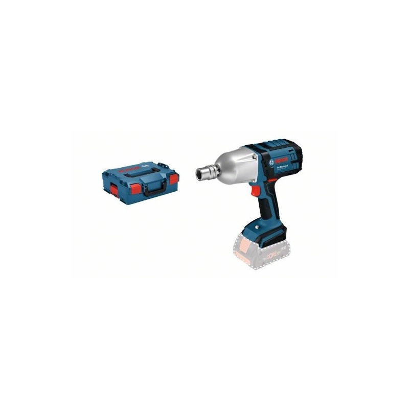 Atornilladores de impacto a batería GDS 18 V-LI HT; El atornillador de impacto a batería de 18 V con más par; Alto par de apriete (650 Nm) para aplicaciones duras de atornilladura en metal (M12-M20) y hormigón; Extremadamente robusto y resistente gracias al engranaje totalmente metálico y a la carcasa de metal; Con solo 3,0 kg, es el atornillador de impacto High-Torque más ligero; Las innovadoras baterías COOLPACK garantizan una óptima disipación térmica y prolongan de este modo la vida útil hasta un 100 % (véanse las baterías de litio sin COOLPACK); Sistema ECP de Bosch (Electronic Cell Protection): protege la batería contra sobrecarga, calentamiento y descarga total; Práctico indicador del estado de carga, para la visualización constante de la reserva de energía disponible; L-BOXX 136 (1 600 A01 2G0); 1/1 bandeja para L-BOXX para herramienta y cargador (1 600 A00 2UW)