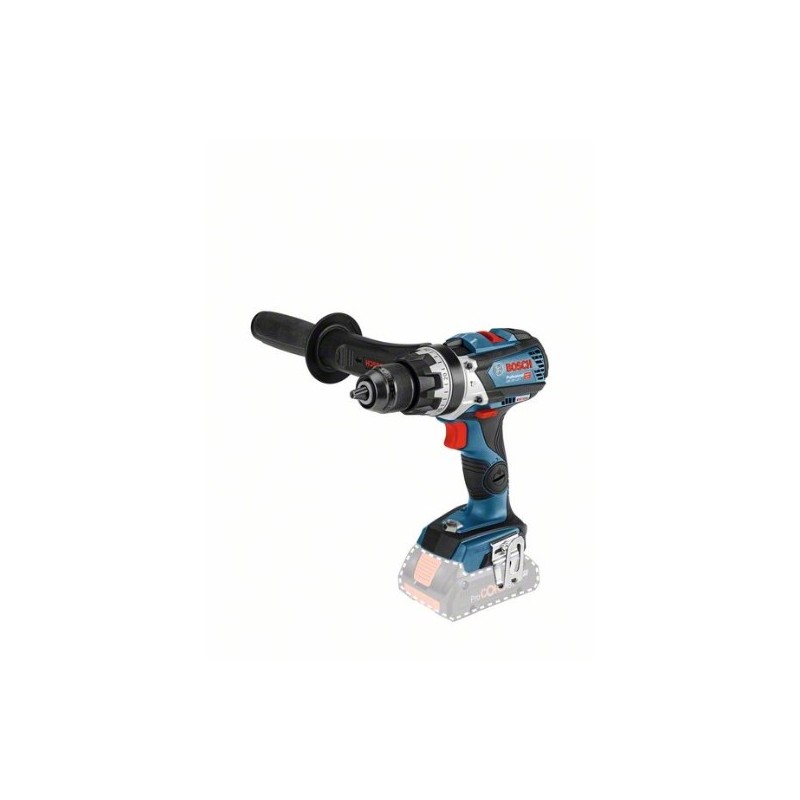 Atornilladores taladradores de percusión a batería GSB 18V-110 C; Conéctese con su taladro con percusión a batería; Potente: par de giro máximo de 110 Nm y motor sin escobillas para un trabajo rápido; Robusto: portabrocas totalmente metálico para las aplicaciones más exigentes en la obra; KickBack Control y empuñadura adicional que reduce el riesgo de una reacción de rotación repentina en caso de atasco; El control de retroceso Kickback Control aumenta la protección del usuario en comparación con otras herramientas eléctricas que no presentan esta función. La herramienta eléctrica se apagará de inmediato si se produce un giro repentino alrededor de los ejes de perforación; Empuñadura adicional codificada y un sencillo mecanismo de bloqueo para un montaje y desmontaje rápidos, y un agarre perfecto; El sistema EMP (Electronic Motor Protection) impide sobrecargas del motor y permite así alargar su vida útil; Las innovadoras baterías COOLPACK garantizan una óptima disipación térmica y prolongan de este modo la vida útil hasta un 100 % (en comparación con las baterías de litio sin COOLPACK); Sistema ECP de Bosch (Electronic Cell Protection): protege la batería contra sobrecarga, calentamiento y descarga total; Luz LED integrada para la iluminación del área de trabajo, incluso en lugares oscuros; Empuñadura adicional (1 602 025 07X)