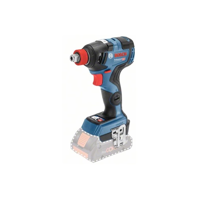 Atornillador/llave de impacto con batería GDX 18V-200 C; Gran potencia con dimensiones reducidas; Diseñado para todo tipo de usos gracias a su soporte para puntas de atornillar 2 en 1: hexagonal interior de ¼" y accionamiento cuadrado de ½"; Excelente rendimiento, incluso en zonas de difícil acceso, gracias a la mejor relación longitud de cabezal/par de giro; Módulo Bluetooth Connectivity opcional para información de la herramienta, arranque suave e información de servicio técnico a través del dispositivo móvil; Caja de cartón; 1/2 bandeja L-BOXX para herramienta y cargador (1 600 A01 CU5)