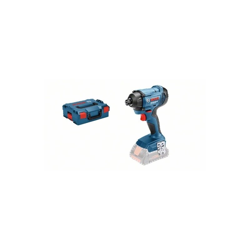 Atornillador de impacto a batería GDR 18 V-160; Perfecta relación de coste-rendimiento entre los taladros atornilladores de percusión profesionales en la categoría de 18 voltios; Eficaz: progreso y trabajo gráfico gracias a una alta velocidad y un par de apriete elevado; Potente: hasta las aplicaciones más difíciles se simplifican gracias al elevado par de apriete; Conveniente: manejo sencillo gracias a su nuevo diseño ergonómico; L-BOXX 136 (1 600 A01 2G0); 1/2 bandeja para L-BOXX, accesorios (1 600 A00 2WC); Bandeja 1/2 L-BOXX para herramienta (1 600 A00 M7R)