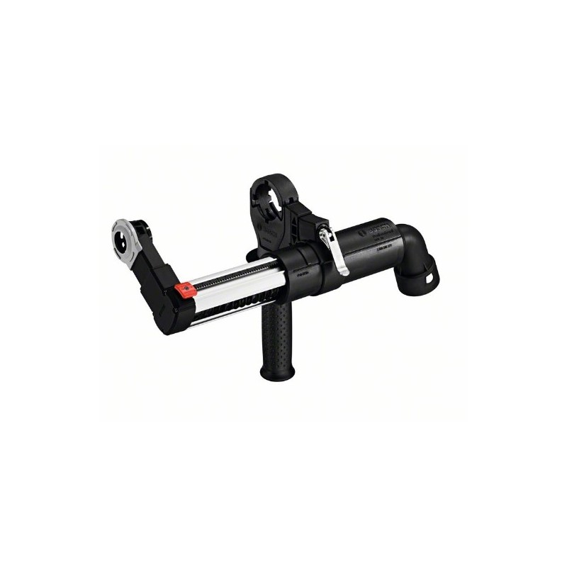 Accesorios de sistema GDE 16 Cyl; Taladrar casi sin polvo con taladros de percusión; Para un trabajo limpio: sin apenas trabajos de limpieza posteriores; Manejo sencillo: conexión a un taladro con percusión y un aspirador con tan solo un clic; Funciona con los taladros de percusión de Bosch GSB 16 RE, GSB 19-2 RE, GSB 21-2 RE y GSB 21-2 RCT; Trabajo preciso gracias a la robusta guía telescópica de aluminio; Máxima flexibilidad: perfecta para zurdos y diestros y, en caso necesario, puede desmontarse; Ideal también para sierras con corona de hasta 82 mm de diámetro; Se adapta perfectamente al sistema Click&Clean de Bosch (es posible la conexión directa a un aspirador)