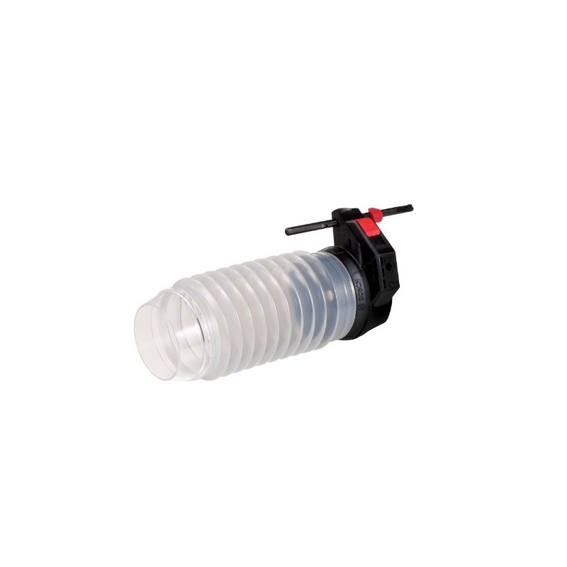 Accesorios de sistema Caperuza de retención de polvo; Caperuza de retención de polvo de fácil montaje para una perforación libre de polvo; Gran eficacia en perforaciones verticales y horizontales; Manejo sencillo para la conexión a través del tope de profundidad del martillo perforador de Bosch; Compatible con martillos perforadores SDS plus de Bosch de 2-4 kg y 18 V o 36 V; Posibilidad de montaje de tope de profundidad adicional; Diseñada para brocas SDS plus de 160 mm - 210 mm de longitud; Diseñada para brocas SDS plus de 5 mm - 16 mm de diámetro; Dimensiones compactas para guardarla en la bolsa de transporte disponible